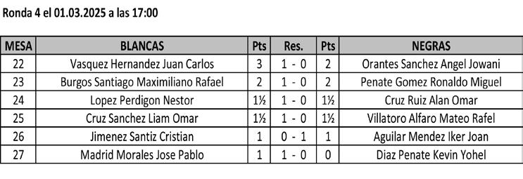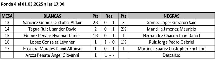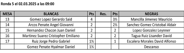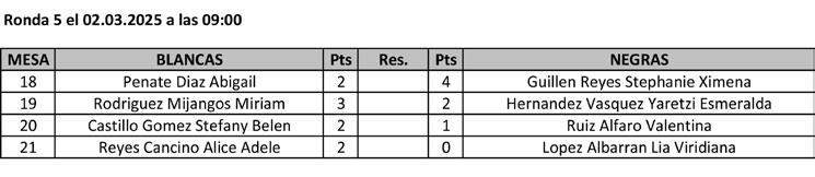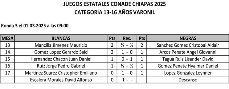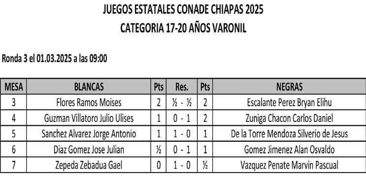 Tablas de Resultados de los Juegos Estatales de Ajedrez Chiapas 2025