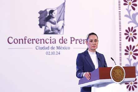 conferencia matutina en el salón Tesorería de Palacio Nacional, un espacio habitual durante la administración de su predecesor, Andrés Manuel López Obrador. En esta primera conferencia de su mandato, la cual dedicó al 56 aniversario de la matanza de Tlatelolco, ocurrida el 2 de octubre de 1968, se pudo observar el nuevo logo que acompañará su administración durante los próximos seis años. En este logo, que fue difundido en sus redes sociales el pasado 30 de septiembre, muestra la imagen de una joven mexicana con características y vestimenta indígena, sosteniendo la Bandera Nacional, lo que ha generado una amplia discusión en redes, donde varios usuarios se han preguntado por qué se eligió esta representación.