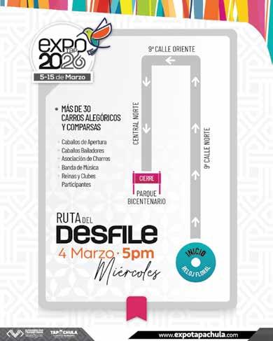El presidente del Patronato de la EFT 2026, Emilio Barrios Solano, invitó a toda la población a disfrutar del desfile tradicional de la feria ganadera, agrícola, comercial y empresarial que se desarrollará del 5 al 15 de marzo y en el que participará la Reina Electa de la 64 edición, Maylén Alvarado Balcázar. Inicia este miércoles con el desfile que arrancará del Reloj Floral del Par Vial de la 9ª Avenida Sur, hasta llegar a la 9ª. Avenida Oriente, en el Centro de Convivencias, para llegar a la Avenida Central Norte y culminar en el Parque Bicentenario. Sun San I t I zan In S talac I one S de la e xpo Fer I a tapachula 2026.