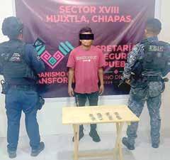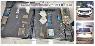 de diferentes calibres, 51 cartuchos útiles, cuatro básculas grameras, 80 dosis y medio kilogramo de una sustancia similar al cristal, 50 gramos de pastillas de lo que pudiera ser fentanilo, y dos bolsas con una hierba verde similar a la marihuana con aproximadamente 165 gramos.
