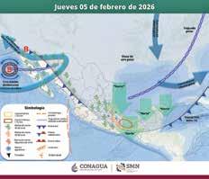 Se informó que el frente frío podría ingresar la tarde del jueves 5 de febrero al sureste de México lo que favorecerá la nubosidad y al aumento del potencial de lluvias en la entidad. Con el evento de Norte, se pronostican rachas fuertes de viento de 70 a 80 km/h en Istmo-Costa y de 50 a 60 km/h en Valles Zoque, Metropolitana y Frailesca.
