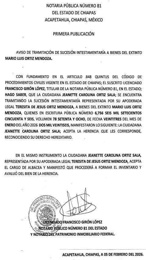 Tapachula de Córdova y Ordóñez, Chiapas; Jueves 05 de Febrero de 2026