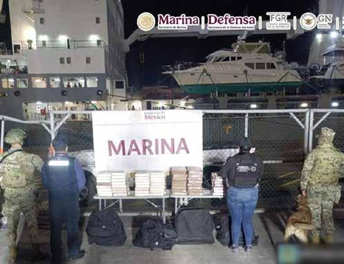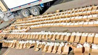 unidad y con apoyo de un ejemplar canino, elementos del Ejército, Marina, Guardia Nacional, Secretaría de Seguridad y Protección Ciudadana (SSPC) y de la FGR se percataron que, en el piso de madera de la caja, se encontraban ocultas 575 cajas de cartón color café que contenían mil 100 kilogramos de metanfetamina.