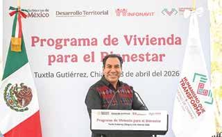 compartida”, expresó. Al acompañar a la secretaria de Desarrollo Agrario, Territorial y Urbano (Sedatu), Edna Elena Vega Rangel, quien asistió como representante de la presidenta Claudia Sheinbaum, y al director general del Instituto del Fondo Nacional de Vivienda para los Trabajadores (Infonavit), Octavio Romero Oropeza, el mandatario aseguró que se trabaja de manera coordinada con la Federación para cumplir la meta de otorgar 20 mil viviendas en 2026. “Desde Chiapas contribuiremos a la construcción de un mejor México”, apuntó.