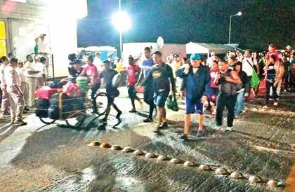 Los migrantes se reunieron en el Parque Bicentenario de esta localidad, desde las 11 de la noche del miércoles, tal como lo habían anunciado al convocar a la comunidad