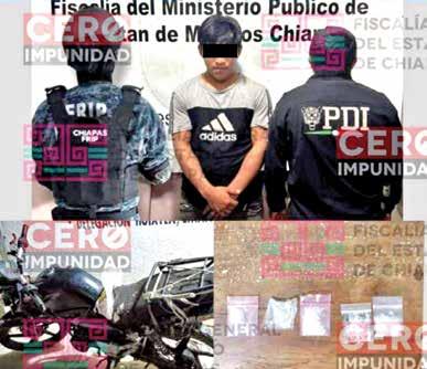 Tuzantán y Tapachula. En Tuzantán, fue detenido en flagrancia Marco “N”, en la Avenida Matamoros, a quien se le aseguraron cinco bolsitas de material sólido cristalino (cristal) y una motocicleta