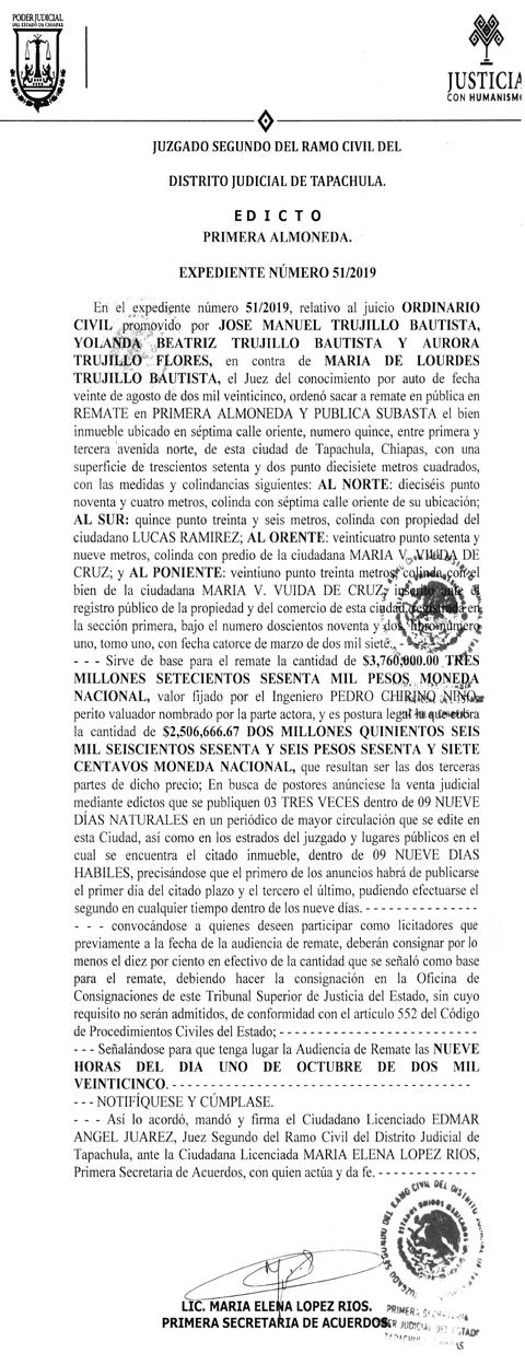 de Córdova y Ordóñez, Chiapas; Miércoles