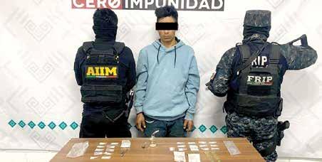 Durante el operativo se detuvo a Cristian “N” y se aseguraron 23 bolsitas con cocaína, una pipa de cristal con líquido color rosa y dinero en efectivo. El detenido y los aseguramientos fueron puestos a disposición del