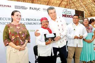 En la entrega de recursos del Programa de Apoyos a las Culturas Municipales y Comunitarias (PACMyC) 2024, el gobernador Rutilio Escandón Cadenas destacó que el gobierno de la Cuarta Transformación ha asumido el compromiso de apoyar a las artes y las culturas, con el objetivo de contribuir al fortalecimiento de la identidad, a la protección de bienes, la preservación del legado histórico, al bienestar y al progreso de los pueblos de Chiapas y México. Subrayó que, durante los seis años de esta administración, se han sumado esfuerzos y recursos con el Gobierno Federal a fin de retomar la realización de concursos y festivales culturales y artísticos; promover, reconocer y dignificar el trabajo de las artesanas y los artesanos; así como abonar al rescate de las diversas expresiones tradicionales que caracterizan a las comunidades indígenas y afrodescendientes de la entidad.