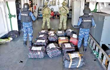 aproximadamente 7.5 (siete punto cinco) millones de dólares, con lo que se debilita la estructura financiera de los grupos delictivos. De esta manera la Secretaría de Marina a través de la Armada de México, mediante operaciones de vigilancia marítima, aérea y terrestre, trabaja para inhibir la acción delincuencial con el fin de garantizar y mantener el Estado de derecho en la mar. Boletín Oficial