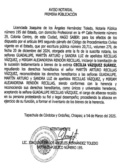 la oficial del Registro Civil Número 03 de Tuxtla Gutiérrez, Yari del Refugio Cadenas Gordillo. Asimismo, el procurador de Protección de Niñas, Niños y Adolescentes y la Familia del DIF Chiapas, Freddy Vázquez Méndez; el subsecretario de Ingresos de la Secretaría de Finanzas, Felipe de Jesús Granda Pastrana; la enlace jurídico en la Subsecretaría de Ingresos, Roxana Elizabeth Farrera Coronel; el procurador fiscal de la Secretaría de Finanzas, Alejandro Hernández López y la esposa del alcalde de Tuxtla Gutiérrez, Mercedes Ortiz Salazar. Boletín Oficial