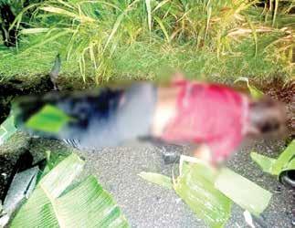 En el lugar colisionaron una camioneta tipo estacas de color rojo conducida por una persona que después de chocar contra una motociclista conducida por una persona del sexo masculino, quien falleció de manera instantánea, descendió de su unidad y se dio a la fuga, dejando la camioneta abandonada, y el motociclista sin vida fuera de la carretera sin vida.