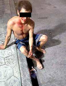 al lugar los rescatistas del Grupo SAE a bordo de la ambulancia UR-02, y le prestaron los primeros auxilios a una persona del sexo masculino, de 28 años de edad, de nombre Santiago “N”, quien presentaba heridas superficiales, al parecer provocadas por arma blanca denominada machete, en el rostro y la parte trasera de la cabeza, el