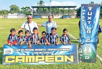 Tuxtla Chico, Chiapas.Emocionantes encuentros finales se disputaron en el Estadio San Miguel de esta localidad en días pasados, en las categoríasInfantil y Juvenil, de la Liga Infantil de Tuxtla Chico, que preside Orlando Arturo Velázquez Becerra. En la categoría Sub-5, San Miguel se coronó campeón al vencer 12 a 3 a Barcelona de Tuxtla Chico.