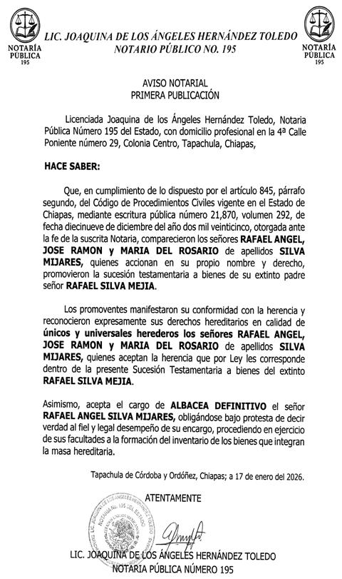 autoridades competentes ya realizan las investigaciones correspondientes y, conforme a la ley, las personas responsables del incendio provocado enfrentarán sanciones penales severas, al tratarse de un delito que atenta contra el medio ambiente, la salud pública y el patrimonio de la región. El Gobierno de Tapachula reiteró su compromiso de actuar con firmeza y dentro del marco legal para que se aplique todo el peso de la ley. Boletín Oficial.