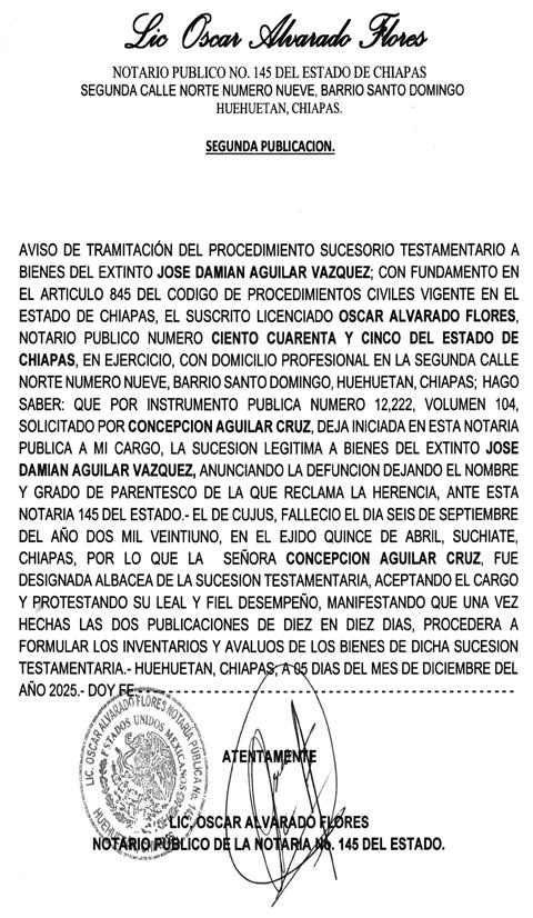 Así lo informó Hugo Pérez Marín, delegado regional de la dependencia, quien precisó que el aumento se encuentra sustentado en una publicación realizada el 24 de diciembre en el Diario Oficial de la Federación, así como en el Periódico Oficial del Estado de Chiapas, documentos que, subrayó, tienen carácter legal y obligatorio.