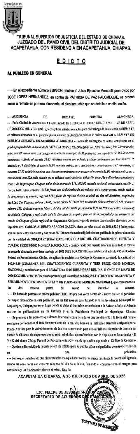 La SSP continuará impulsando estrategias coordinadas que permitan consolidar entornos de paz y tranquilidad en todas las regiones del estado, contribuyendo así al desarrollo económico y bienestar de las familias chiapanecas en esta Nueva ERA. Boletín Oficial