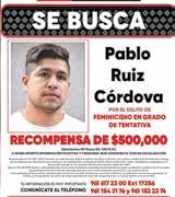Tuxtla Gutiérrez, Chis., 16 de Abril.- La Fiscalía General del Estado ofreció una recompensa de 500 mil pesos para la búsqueda y localización de Pablo Ruíz Córdova, presunto responsable del delito de feminicidio en grado de tentativa de su expareja sentimental Ana Luisa.