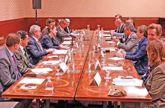 En el encuentro de carácter privado, que se llevó a cabo en la Sala WildroseBallroom South del Hotel Sheraton, estuvieron presentes, por parte del Consejo Empresarial de Canadá: el presidente y director ejecutivo del Business Council of Canada (BCC), GoldyHyder; la asesora especial senior en el BCC, Shauna Hemingway; el presidente y director ejecutivo de TC Energy, François Poirier, la cual opera siete gasoductos con la Comisión Federal deElectricidad (CFE); el director ejecutivo de WestJet Airlines, Alexis von Hoensbroech, que opera más de