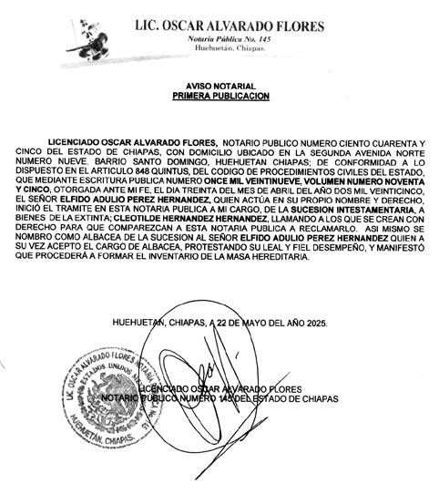 Con estas acciones, la Fiscalía General del Estado refrenda su compromiso de aplicar el Estado de derecho y garantiza Cero Impunidad hacia las personas generadoras de violencia en Chiapas.Boletín Oficial