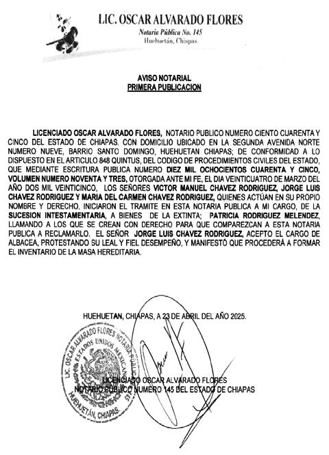 “Con la Estrategia Nacional de Seguridad Pública y las acciones decididas de nuestro gobernador Eduardo Ramírez Aguilar, Chiapas está dejando atrás el abandono y el miedo. Hoy construimos, juntos, la Nueva ERA de la paz, con justicia, seguridad y bienestar para todas las familias chiapanecas”, concluyó Melgar. Boletín Oficial
