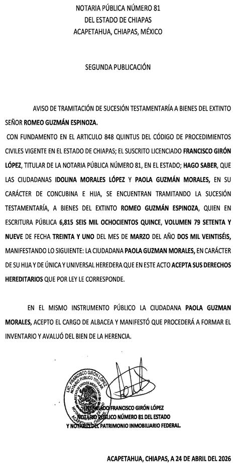 Cintalapa, Chiapas; 23 de Abril de 2026.- De última hora autoridades informaron la detención de Pablo “N”, señalado como presunto responsable del delito de feminicidio en grado de tentativa en agravio de Ana Luisa “N”, en hechos ocurridos en este municipio.