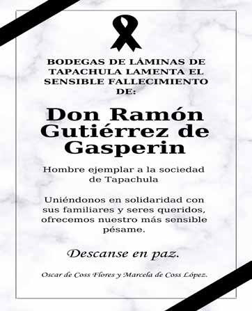 Expresamos nuestras más sentidas condolencias y nos unimos al sentimiento de dolor de su apreciable familia.