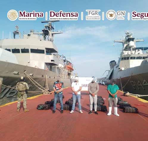 buque y aeronave, en la que se aseguraron más de 900 kilos de cocaína, al suroeste de las costas de Acapulco, Guerrero. Esta acción se realizó durante recorridos de patrullaje de vigilancia marítima y aérea para mantener el Estado de derecho en la mar, en los que participaron embarcaciones y unidades aéreas de la Armada de México, las cuales avistaron 30 bultos tipo costalillas, por lo que se procedió a una inspección, donde se aseguraron los paquetes que estaban envueltos en plástico negro con la carga ilícita. Derivado de lo anterior, los paquetes asegurados fueron puestos a disposición del agente del Ministerio Público correspondiente, con el fin de integrar la carpeta de investigación del caso y realizar las indagatorias subsecuentes. Boletín Oficial