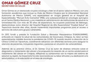 -Omar Gómez Cruz, titular de la Secretaría de Salud. -Roger Adrián Mandujano Ayala, titular de la Secretaría de Educación.