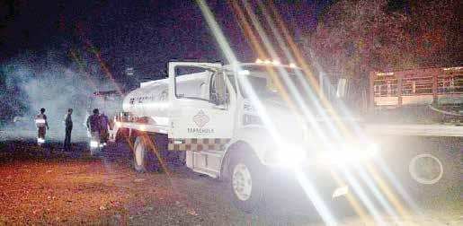 Civil de Tuzantán que realizaban labores para sofocar el siniestro. Luego de varios minutos se logró controlar y sofocar el fuego, que consumió al menos seis vehículos, incluyendo un autobús. Afortunadamente, no se tuvo pérdidas de vidas humanas, solamente daños materiales considerables. Ahora serán las autoridades correspondientes quienes investigarán las causas de este siniestro. EL ORBE/ Ernesto L. Quinteros.