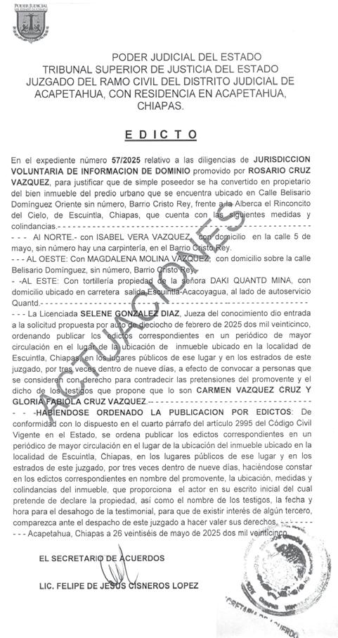que los tiempos de abandono y altos niveles de inseguridad son cosas del pasado, pues ahora, con la Nueva ERA, las instituciones están presentes. “Venimos aquí para ratificar nuestro compromiso: no los vamos a dejar solos. Los grupos delictivos que pretendan regresar enfrentarán la ley”, expresó. El presidente municipal de Motozintla, Alfonso Meza Pivaral, agradeció el respaldo que el gobernador Eduardo Ramírez brinda al sector productivo, lo que refleja su compromisocomo un verdadero aliado de quienes trabajan la tierra. Recordó que hasta hace pocos meses la población vivía con temor, pero hoy, gracias a la Fuerza de Reacción Inmediata Pakal, en el municipio se respira un ambiente de paz. Cristina Velázquez Morales, comerciante de la región, reconoció la eficacia de las estrategias implementadas por el Gobierno Estatal en materia de seguridad, que han permitido que las familias y comerciantes de las distintas comunidades vuelvan a las calles con mayor confianza. Más tarde, Eduardo Ramírez, junto al secretario de Salud, Omar Gómez Cruz, recorrió las Unidades Médicas de Atención Comunitaria, donde resaltó su compromiso de acercar servicios de salud gratuitos a las comunidades más vulnerables. Durante esta gira también estuvo presente el subsecretario de la Región Sierra Mariscal de la Secretaría General de Gobierno y Mediación, Andrés Carballo Bustamante. Boletín Oficial