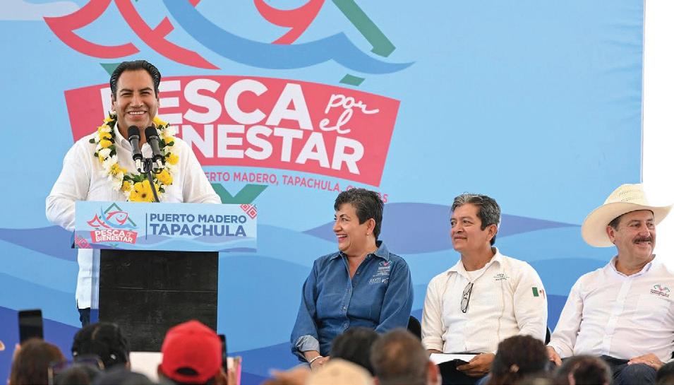 A su vez, el presidente municipal de Tapachula, Yamil Melgar Bravo, resaltó que este programa no solo representa un respaldo económico para las y los pescadores, sino también una herramienta para dignificar la actividad, reducir la vulnerabilidad en temporadas de veda, impulsar la organización comunitaria y promover una pesca sustentable. En representación de las y los beneficiarios, el presidente de la Federación de Sociedades Cooperativas Pesqueras y Acuícolas Pescadores de la Frontera Sur, Alfredo SumozaBalanzar, reconoció el impulso del Gobernador para fortalecer al sector y reiteró