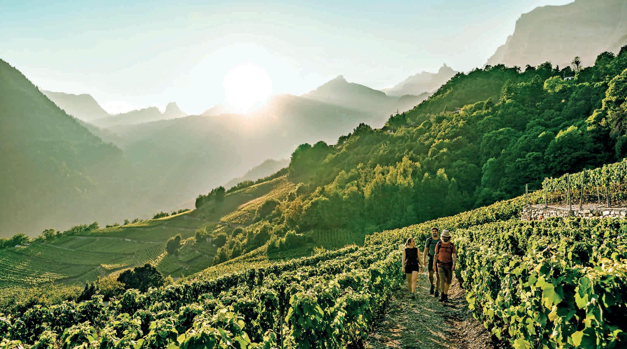 Chamoson es el mayor viñedo del Valais. Un lugar donde la convivialidad es un arte de vivir, con una veintena de bodegas y otros tantos restaurantes. © Suisse Tourisme