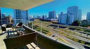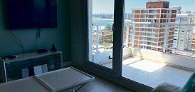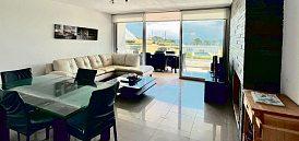 APARTAMENTO esquinero con excelente vista al mar, living comedor con cocina integrada, 1dormitorio ymedio (1 suite con vestidor) ytoilette. Calefacción central ylosa radiante, muy bien equipado.