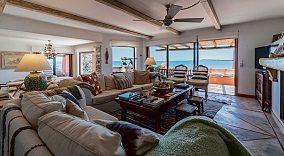 con living comedor, sala de tv, toilette, cocina, jardín con piscina propia, parrillero yhab. de servicio. 5dormitorios en suite (2 con salida directa alaterraza yvista al mar). 3garages y3bauleras.