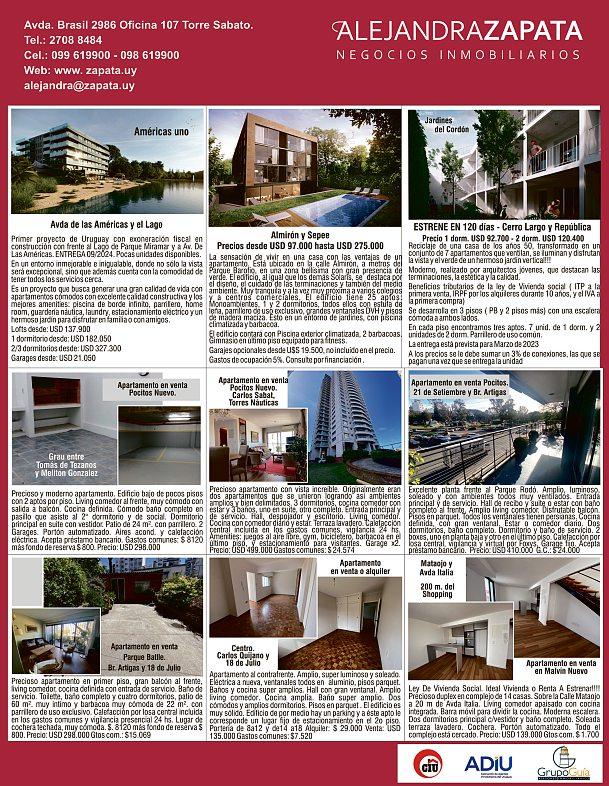 24 tucasaaqui LABLANQUEADA BritoForesti a mtsdeAv. Italia USD215.000 BUCEO USD 115.000 1DORMITORIO POCITOS La Gaceta esq.Luis Lamas USD289.000 Apto en VENT A PUNTACARRETAS Próximo a21de Setiembre yEllauri USD 310.000 3DORM. MALVÍN Próximo Colombes yRivera USD235.000 Casa en VENT A Casa en VENT A PUNTAGORDA Av.Gral. Paz yPalermo USD790.000 4DORM. Casa en VENT A 27 07 07 00 Tel. yWhatsApp www.abate.com.uy info@abate.com.uy Av.Gral. Paz1452 Punta Gorda, MVD 1AUTO 2DORM. 1AUTO 2AUTOS 2DORM. 1AUTO 3DORM. 1AUTO Av.Rivera próximo aDiamantis Plaza Apto en VENT A APARTAMENTOS CASAS