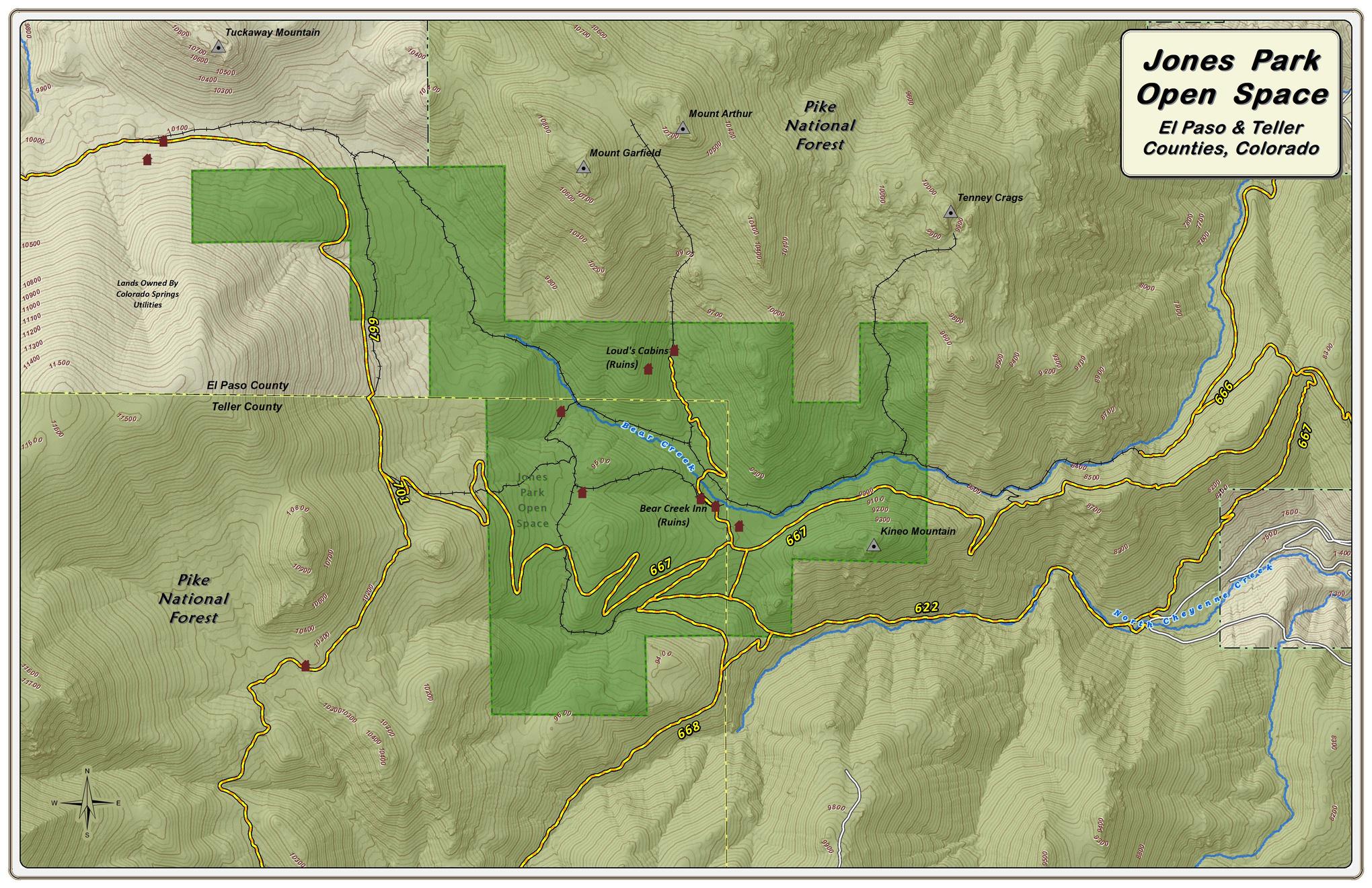 El Paso County invites you to enjoy one of the region’s most historic outdoor spaces, Jones Park Open Space. The area’s rich history dates to the 1859 Gold Rush when many passed through the area along the Pikes Peak Wagon Road, where Capt’n Ellen E. Jack ran her lodge. She was known for her keen ability to wield a gun and shoot unwanted hasslers. Jones Park now serves as a diverse recreational hub with trail opportunities for hikers, mountain bikers, and motorcycles, with a popular trail named after Capt’n Jack.