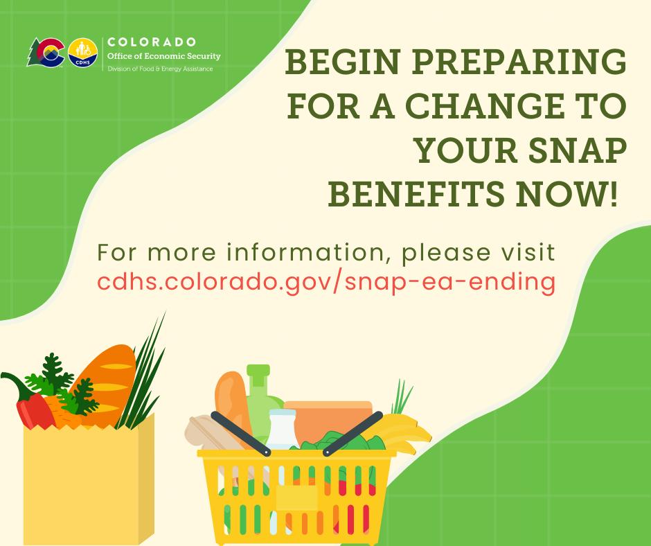 All Coloradans who receive Supplemental Nutrition Assistance Program (SNAP) benefits will see a reduction in their monthly benefit amount after February 2023. The temporary additional benefit amounts (emergency maximum allotments) are ending due to the result of congressional action.