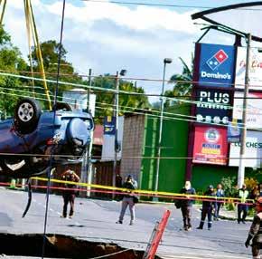 Desde las 17:28 horas del 24 de s e ptiembre un automóvil, en el que viajaba una familia que regresaba de laborar en el mer cado de Villa Nueva, cayó en uno de los agujeros formados por el socavamiento sobre la calzada Concepción
