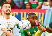 Serbia sin Vlahovic Serbia dejaba en el banquillo a su delantero estrella Dusan Vlahovic, de la Juventus, aque jado de una pubalgia y al que el técnico balc ánico, Dra gan Stojkovic, prefiere dosificar C amerún a p rovechó un a j u g ada a bal ó n parado par a tomar la delantera con un gol de Jean Charles Castelletto, del Nantes franc é s, que empu jó el b alón a la red desde cerca (29).