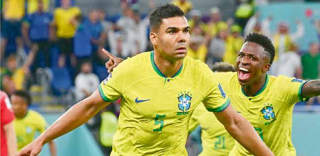 Casemiro, titular y autor del gol de la victoria por 1-0 con tra Suiza, se mostró satisfecho de haber cumplido la meta de la canarinha de clasificarse a octavos de final en Catar-2022. El jugador del Manchester United dijo que el “primer obje tivo” fue cumplido al clasifi carse “en un grupo muy difícil” para los octavos de final del torneo, algo “importantísimo”, destacó en declaraciones al canal brasileño SporTV Casemiro fue una de las figuras del equipo verdeamarelo, deci sivo al anotar el único tanto del partido en el minuto 83 que le dio a Brasil la segunda victoria consecutiva.