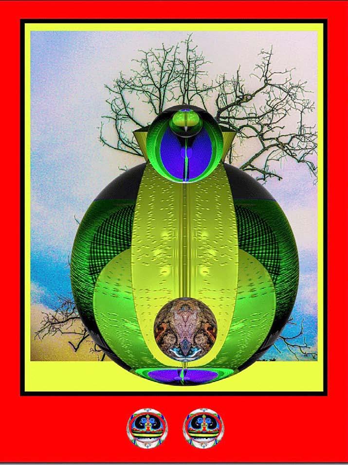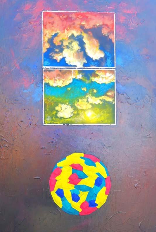 verso. Mediante el collage, Igal otorga un nuevo significado a cada una de las fotos, creando un lenguaje propio dentro de cada obra…”. Añade que “en las obras de Igal, la esfera vincula el plano espiritual con el plano mundano, como lo hace el corazón en el cuerpo humano”.