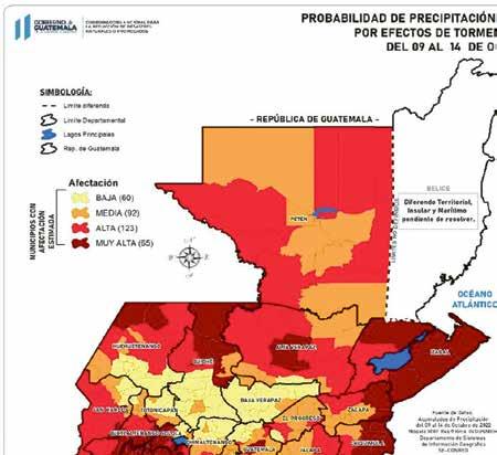 García señaló que actualmente en Guatemala se reporta una sa turación elevada de agua en los suelos, ya que en algunas regio nes oscila entre el 80 y el 90 por ciento. Indicó que es importante que esto se tome en cuenta debido a las condiciones climáticas que se tendrán en los próximos días.