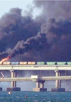 El puente es el símbolo de la anexión de esta península ucra niana por parte de Rusia en 2014. Está considerado la joya del mandatario ruso Vladímir Putin en Crimea. De hecho, el Presidente ruso ordenó su construcción sobre el estrecho de Kerch, considerado el más largo de Europa con sus 19 kiló metros. En mayo de 2018 Putin inauguró el tramo automovi lístico, y a fines de 2019 se abrió también el tramo ferroviario Ayer, tras la explosión, el gobernante ruso ordenó la creación de una comisión gubernamental formada por varios minis terios para “averiguar las causas del incidente y eliminar las consecuencias lo antes posible”