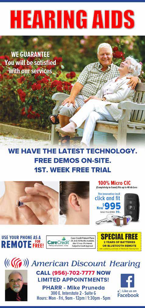17Miércoles 5 de Octubre 2022 Nuestros Servicios ¡Contamos con equipos dentales de última generación! Aceptamos la mayoría de los seguros privados, Medicaid, CHIP y Medicare 956-631-71771200 E. Ridge Rd. Ste. 9 McAllen, TX 78503 CONTÁCTANOS y personalizadaconfiable, atentaOdontología Exámen y limpieza dental Puentes, Parciales y Dentaduras Atención de emergencia Limpieza Profundas Resinas Extracciones Endodoncias Problemas Mandibulares Implantes Coronas