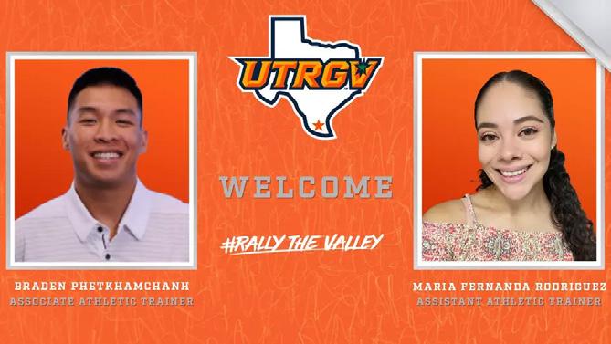 The University of Texas Rio Grande Valley (UTRGV) Department of Intercollegiate Athletics announced on Monday the hiring of Braden Phetkhamchanh as associate athletic trainer and Maria Fernanda Rodriguez as assistant athletic trainer.