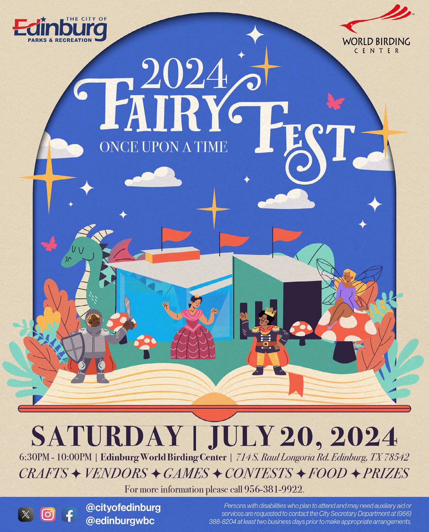 Step into a world of enchantment at the Edinburg Scenic Wetlands & World Birding Center on Saturday, July 20th, for Fairy Fest 2024: Once Upon A Time!