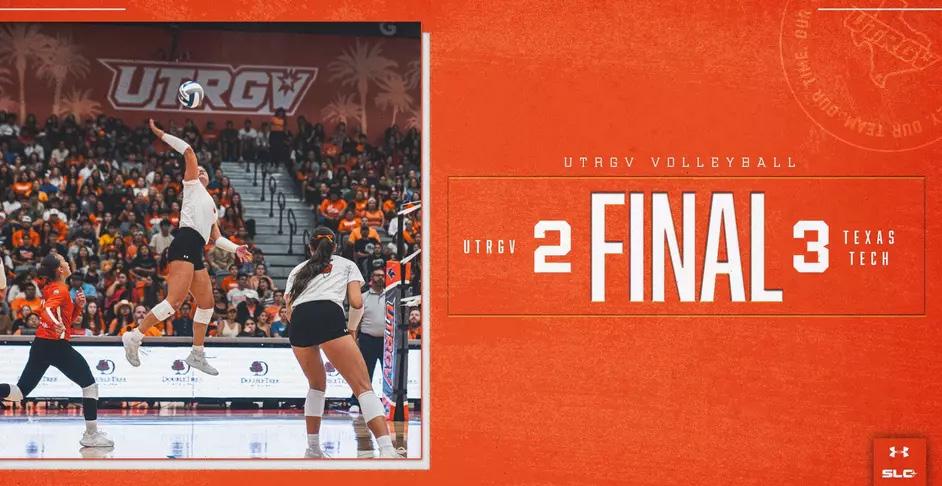 The University of Texas Rio Grande Valley (UTRGV) Vaqueros volleyball team lost a heartbreaking fiveset battle, 3-2 (21-25, 24-26, 25-21, 25-23, 15-11), Thursday to the Texas Tech (TTU) Red Raiders in front of a program-record crowd of 2,771 at the UTRGV Fieldhouse. This is the first sellout in program history and destroys the previous best crowd of 2,176 set in Sept. 2018 the last time Texas Tech came to the Valley. The Vaqueros (4-3) will play their second match of the UTRGV Tournament at 6:30 Friday against San Francisco. Visit UTRGVTickets.com to purchase tickets for the UTRGV match or the four other contests in the tournament. A clear bag policy is in place for the UTRGV Fieldhouse.
