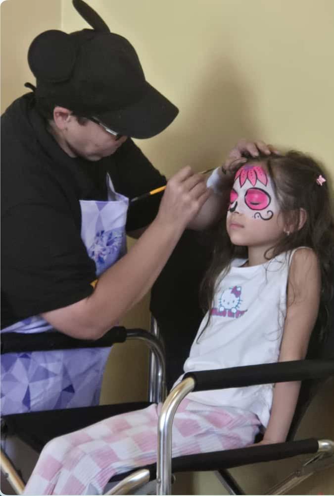 transformó los rostros de los niños en verdaderas obras de arte con diseños de mariposas, superhéroes, unicornios, flores y criaturas fantásticas, llenando el ambiente de sonrisas y color. Las filas frente a su stand se mantuvieron constantes durante toda la jornada, convirtiéndose en una de las atracciones favoritas del público.