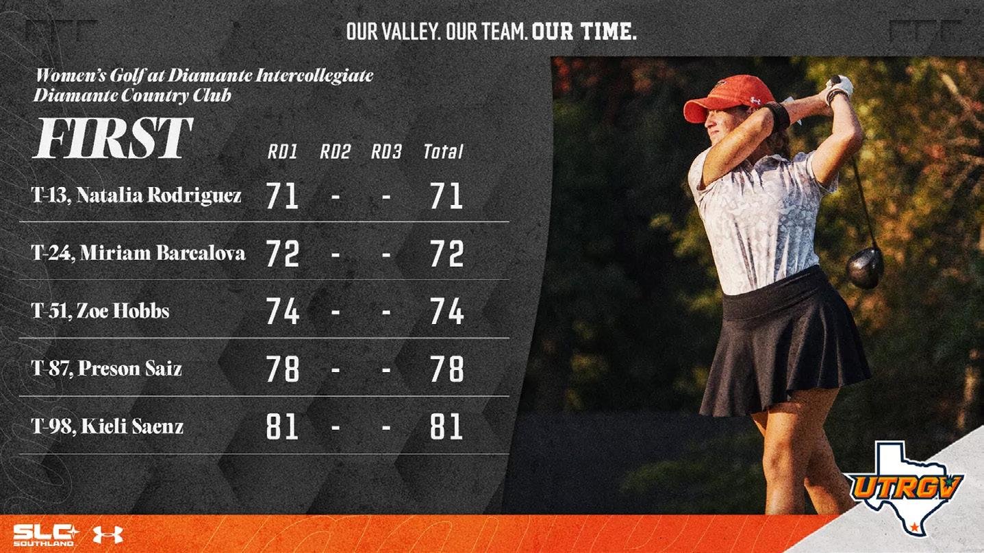LITTLE ROCK, Ark. – The University of Texas Rio Grande Valley (UTRGV) Vaqueros women’s golf team opened with a solid first round of 295 in the first round of the Diamante Intercollegiate on Sunday at Diamante Country Club.